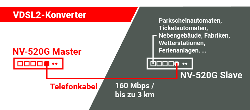 160 Mbps bandwidth: With this new VDSL2 converter from Netsys, you can now deliver more bandwidth to your destination via your telephone line. You can now do without the costly retrofitting of network cables.